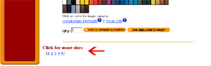Step 4: Select size There are 3 sizes on a page and larger sizes on additional pages. Simply scroll down for more sizes until you see where it says "click for more sizes" and there you will see the multiple pages of sizes.